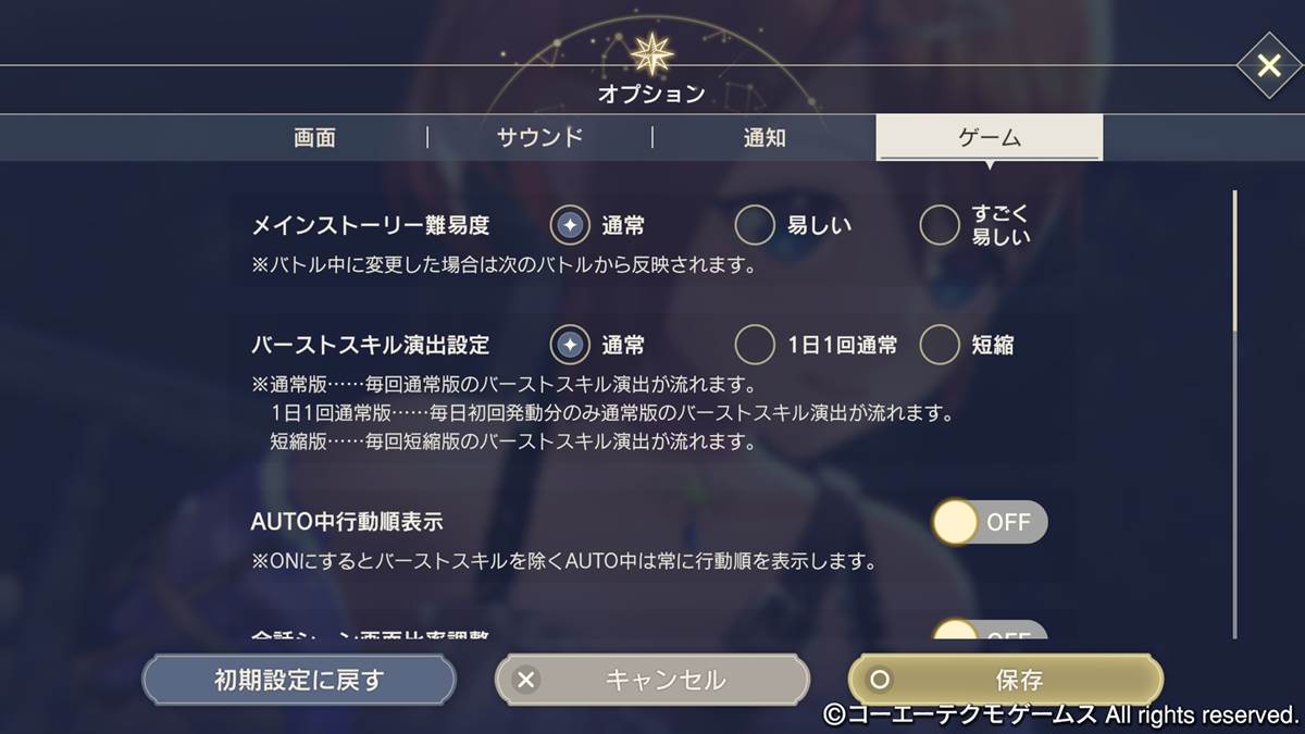メインストーリー中のバトルの難易度設定ができる機能を追加いたしました。難易度は「通常」「易しい」「すごく易しい」から選択可能で、「易しい」もしくは「すごく易しい」に設定した場合、各設定に応じてバトルに登場する敵のステータスが低下します。