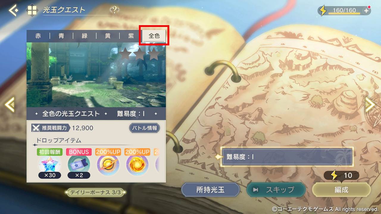 2024/09/19メンテナンス終了後〜2024/10/01 11:59まで、期間限定で開催しておりました、すべての光玉がドロップする全色の光玉クエストを恒常化いたします。全色の光玉がまんべんなく獲得可能です。