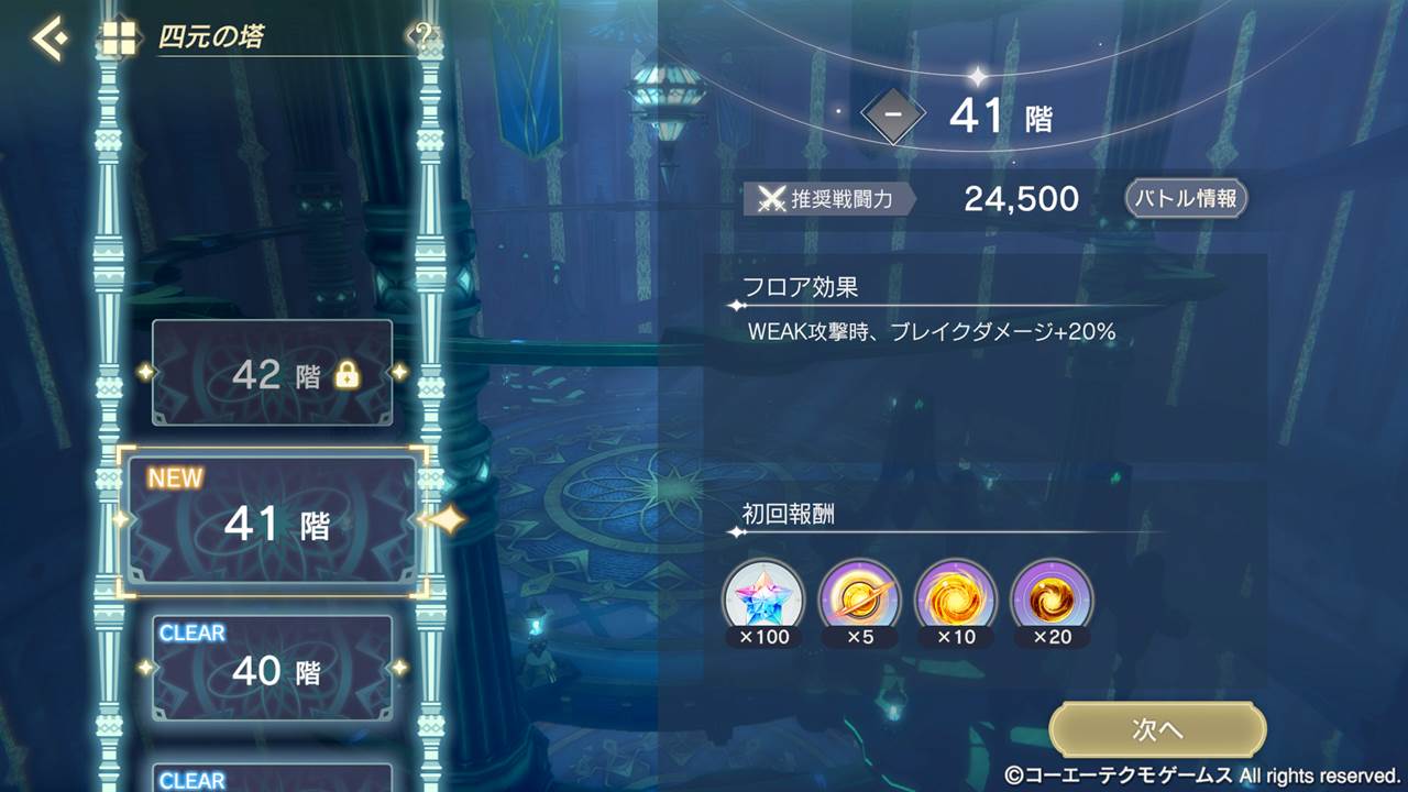 極秘クエスト「四元の塔」に41〜45階を追加いたします。45階のクリアで、先述の「希望の粒」も獲得可能ですので、腕に自信のある皆様はぜひ挑戦してみてください。