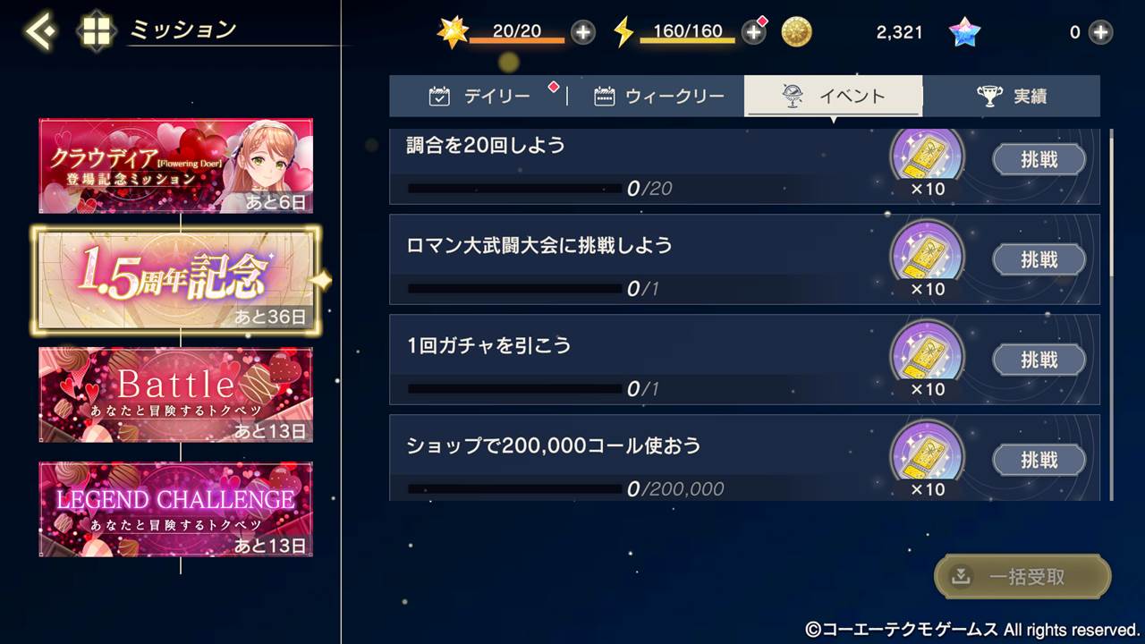 ※ミッションの詳細はホーム>ミッション>イベント>1.5周年記念ミッションをご確認ください。