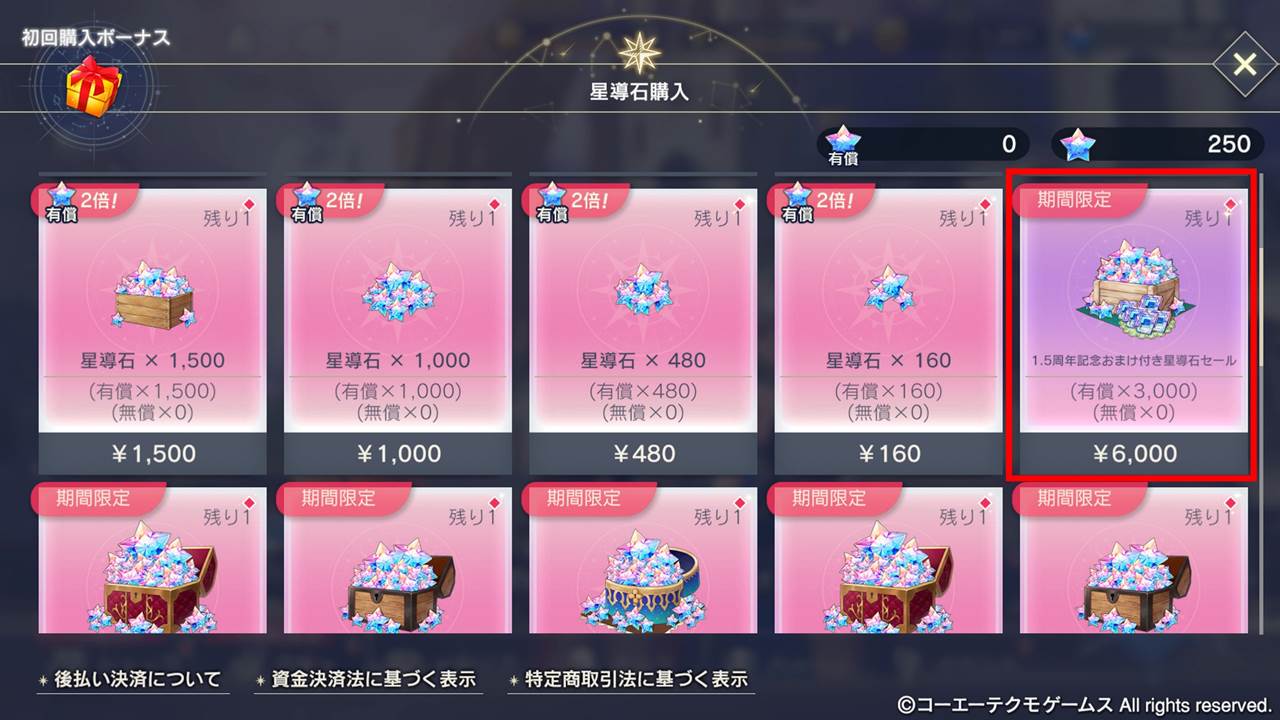 【追記】「1.5周年記念おまけ付き星導石セール」販売