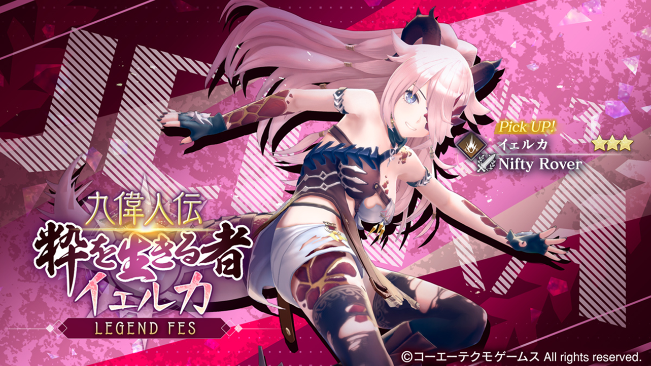 「九偉人伝 粋を生きる者 イェルカ LEGEND FES[有償限定]」はSTEP1〜5までのステップアップガチャとなっており、STEP3ではPU確率2倍となり、さらにSTEP5ではPU確率3倍!