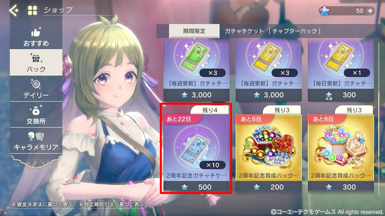 ※パックの詳細は、ホーム画面>ショップ>パック>期間限定よりご確認ください。