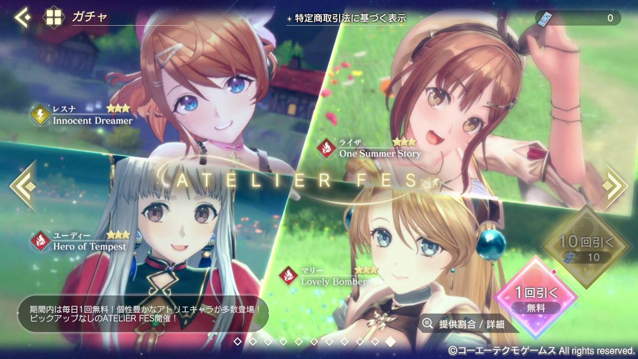 「1日1回ATELIER FES無料キャンペーン」開催! (09/12 更新)