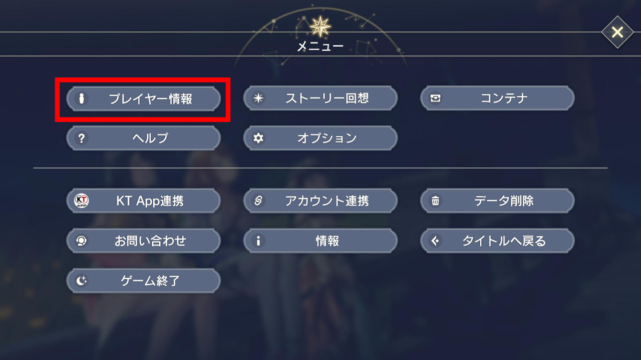 (2)メニューのプレイヤー情報ボタンからプレイヤー情報に移動します。