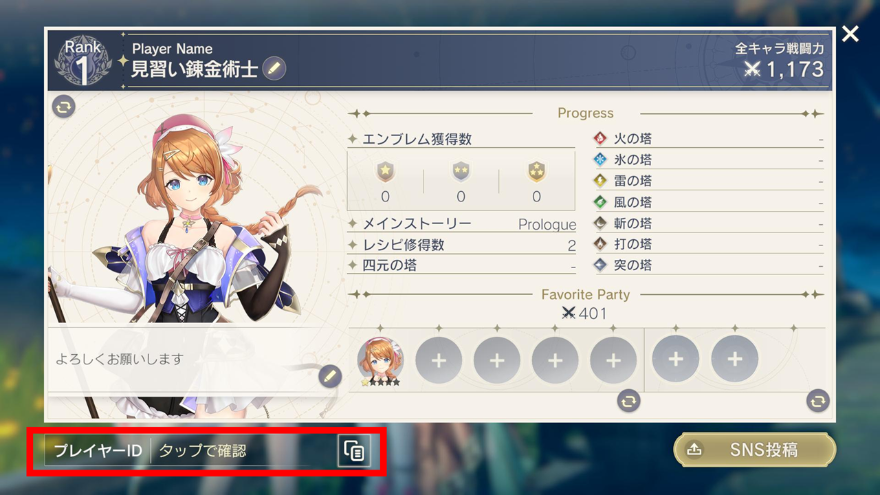 (3)プレイヤー情報画面左下のプレイヤーIDから確認することができます。