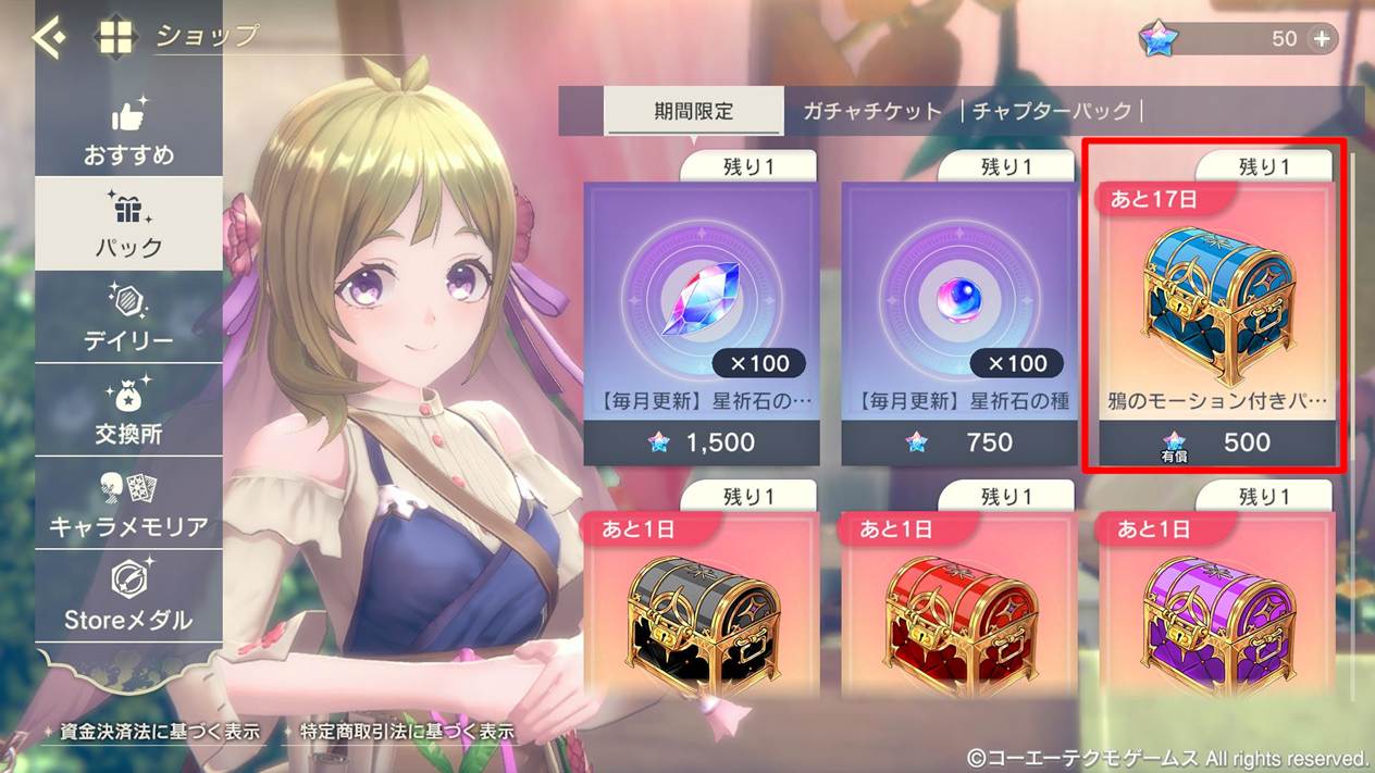 ※パックの詳細は、ホーム画面>ショップ>パック>期間限定よりご確認ください。