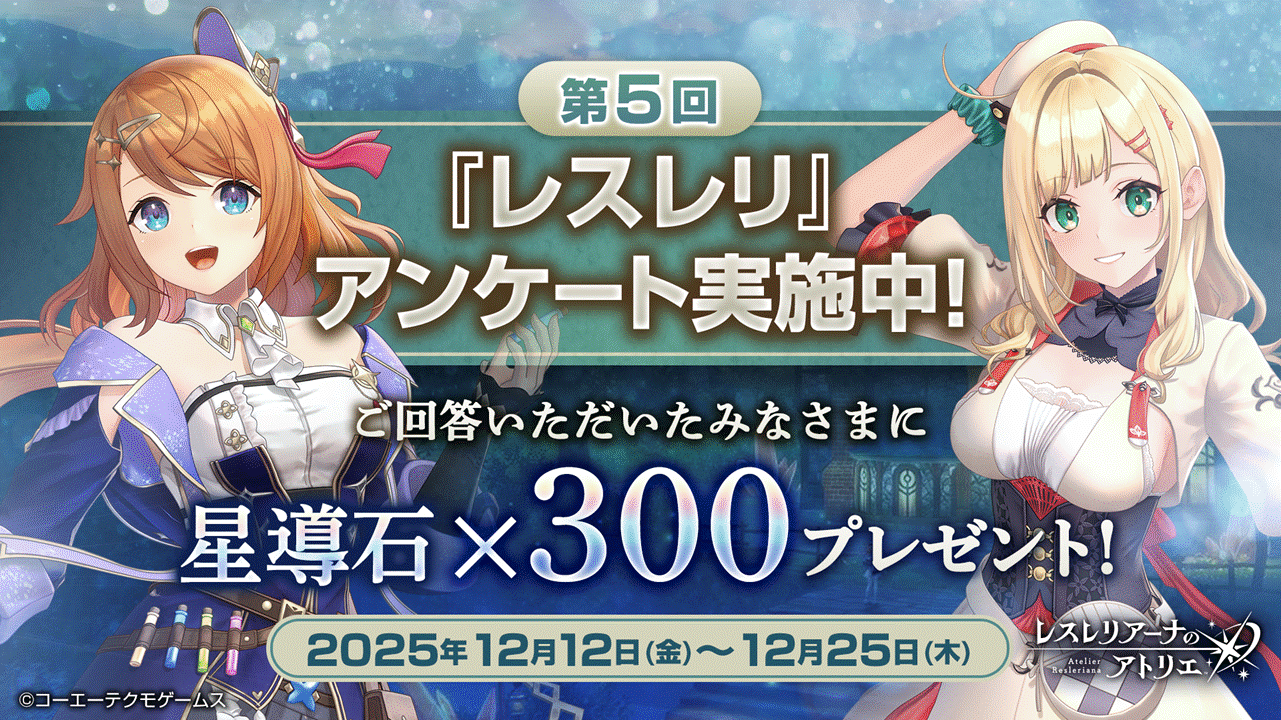 『レスレリ』をお楽しみいただいている皆様に、これからもさらに素敵なゲーム体験をお届けできるようにアンケートを実施いたします!