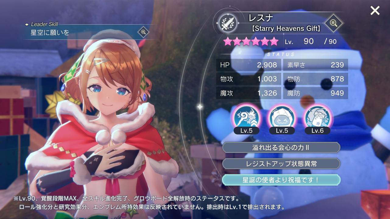 2025/12/12メンテナンス終了後より、レスナ【Starry Heavens Gift】が★6へ覚醒可能になります。