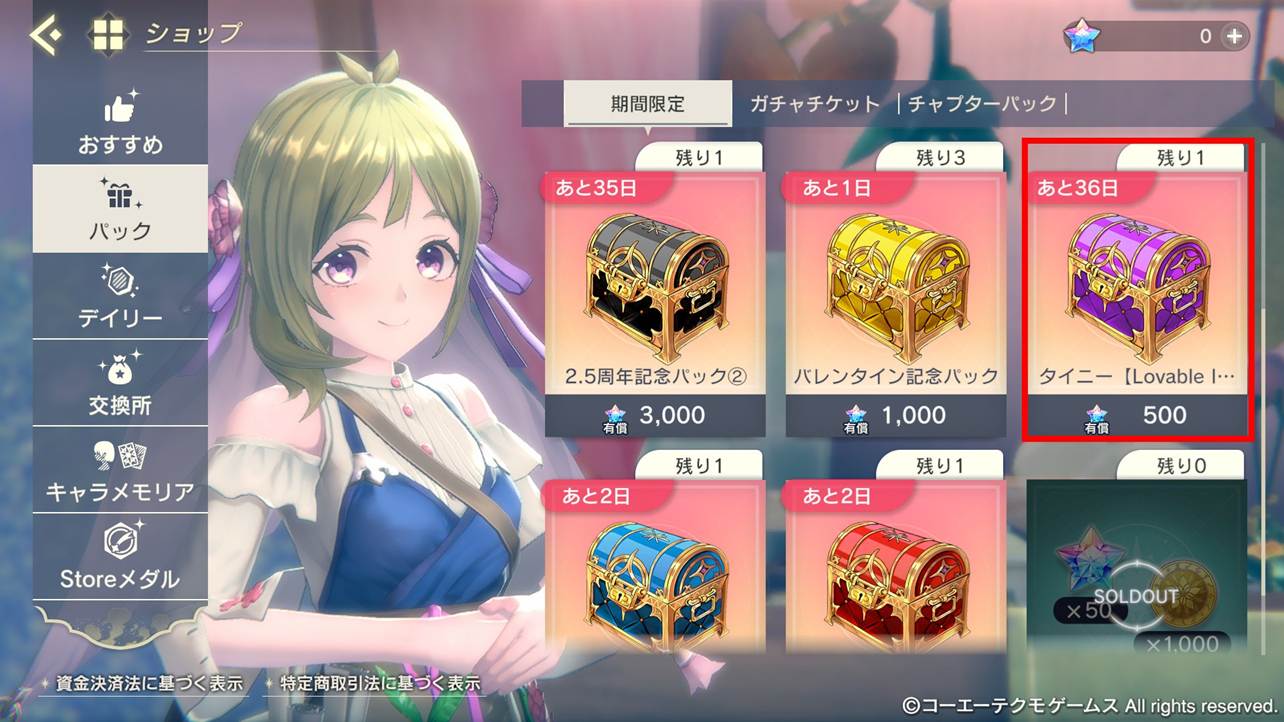 ※パックの詳細は、ホーム画面>ショップ>パック>期間限定よりご確認ください。