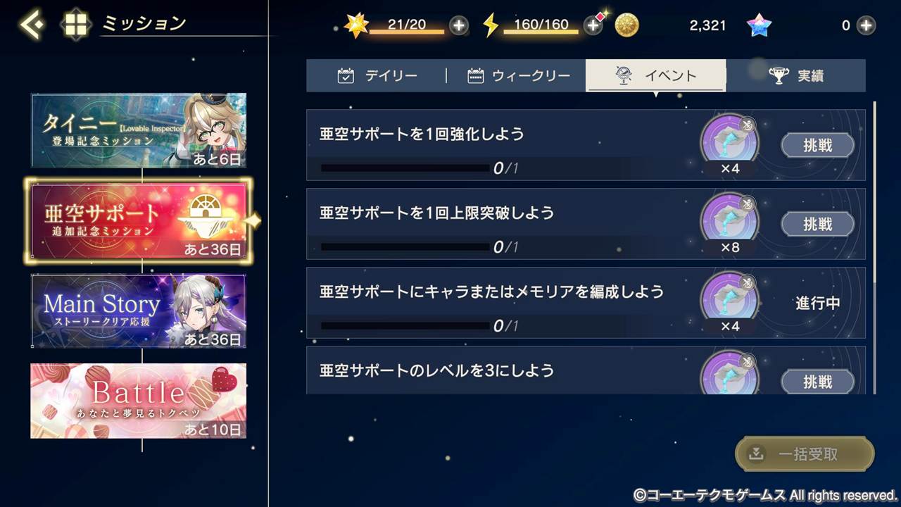 また、亜空サポートの追加を記念して、イベント「亜空サポート追加記念ミッション」開催!