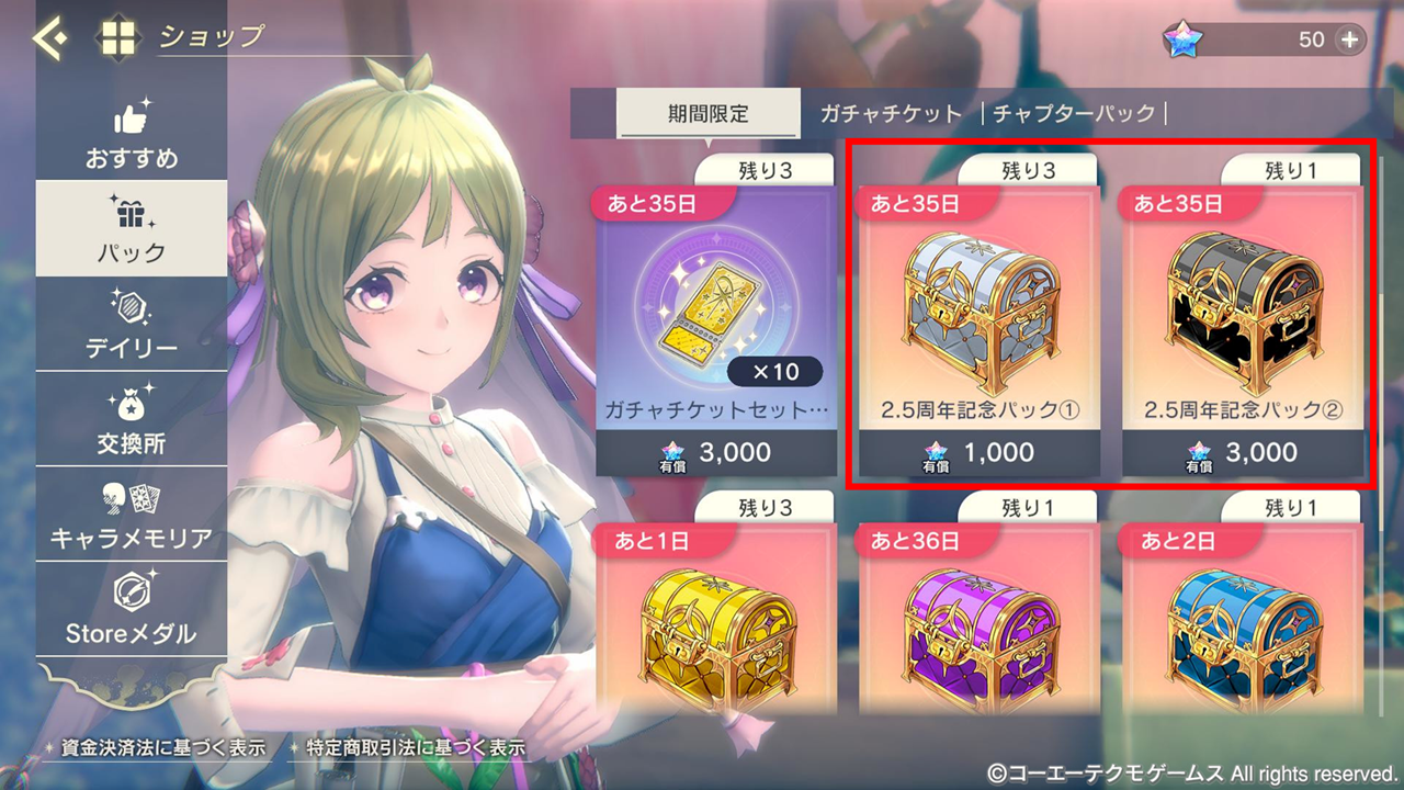 ※2.5周年記念パック②の購入上限回数は1回までとなっております。