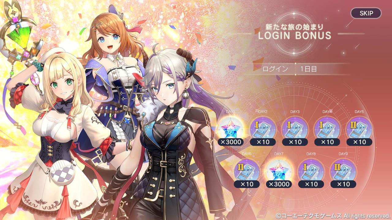 「新たな旅の始まり LOGIN BONUS」は、ゲームに連続で30日以上ログインしていなかった方のみが対象となっております。