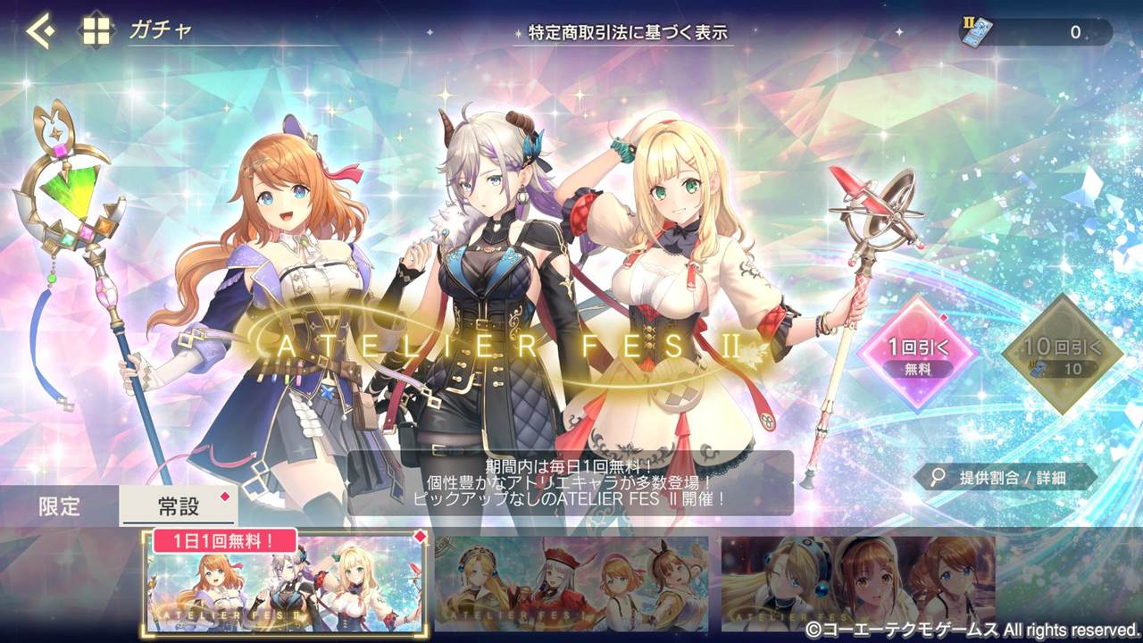 期間中、毎日1回無料でATELIER FES Ⅱを引くことができるキャンペーンを開催いたします。