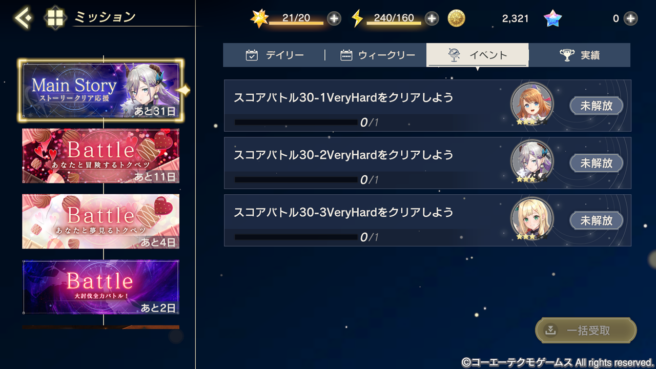 ※ミッションの詳細はホーム画面>ミッション>イベントでご確認いただけます。